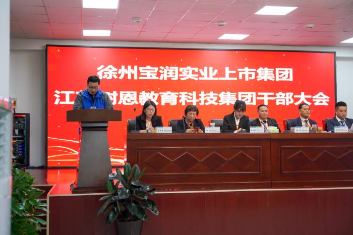 2020年10月10日,徐州宝润实业上市集团、江苏树恩教育科技集团干部大会在徐州市树恩外国语小学举行。徐州宝润实业上市集团董事局主席、董事长张爱平出席会议并作重要讲话。集团董事局成员及下属产业集团经营团队、职能部门主要负责人参加会议。