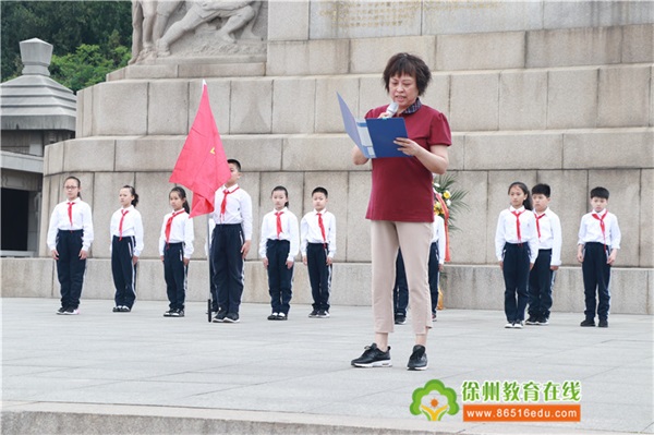 这震耳欲聋的宣誓响彻在徐州淮海烈士纪念塔的上空!鲜艳的红领巾映衬着新队员的脸颊,每个人的脸上都洋溢着幸福、甜蜜的笑容,这是他们最激动的时刻。